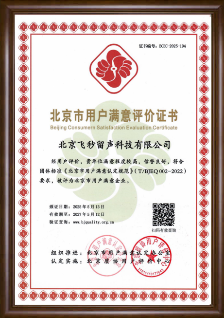 北京市用户满意评价证书