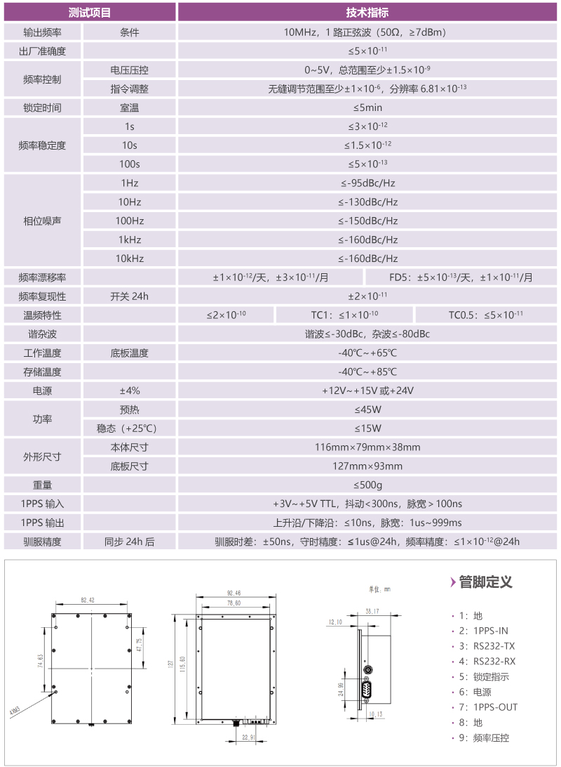 低老化率、低温频系数全温范围<2E-10,可优选至<5E-11